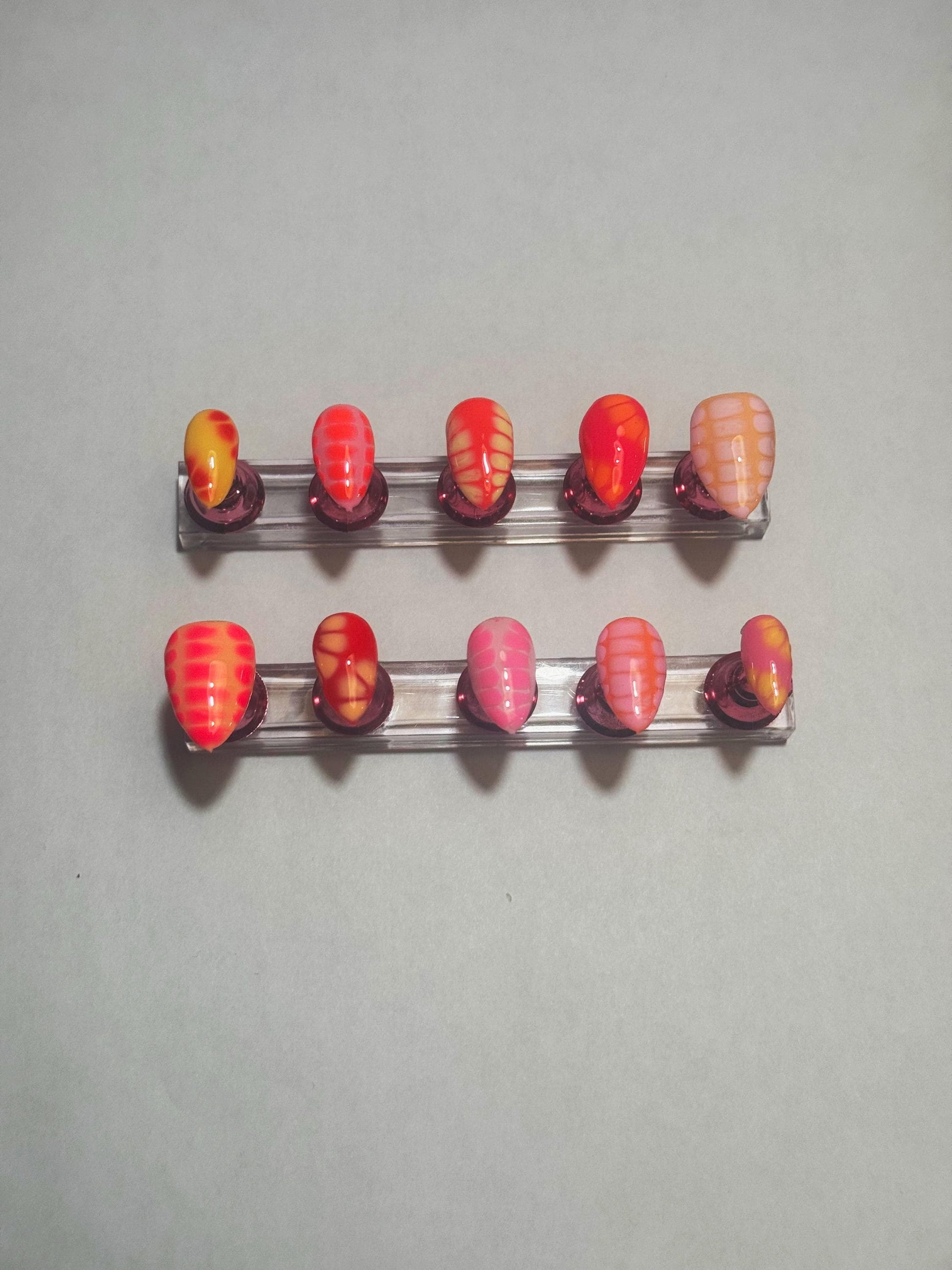 This press-on nail set features bold, bright colors blended using blooming gel for a soft, abstract finish with a glossy shine. The vibrant pinks, oranges, and yellows create the ultimate summer-ready look—perfect for vacations, festivals, or everyday fun. Handmade with love and fully reusable, these nails combine artful detail with functional wear. Customizable to your preferred shape and size, they’re a flawless way to add a pop of color and creativity to your style.