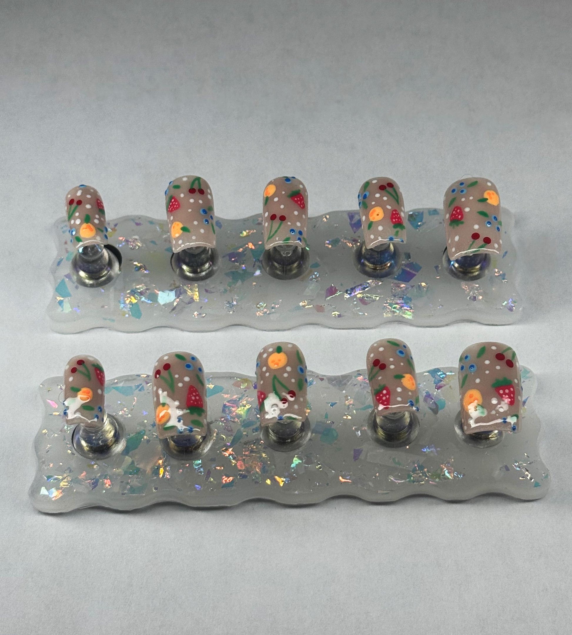 Fruit Press On Nails | Colorful Custom Nail Set | Hand Painted Fruit Nail Art | Reusable Press Ons | Cute Summer Nail Design